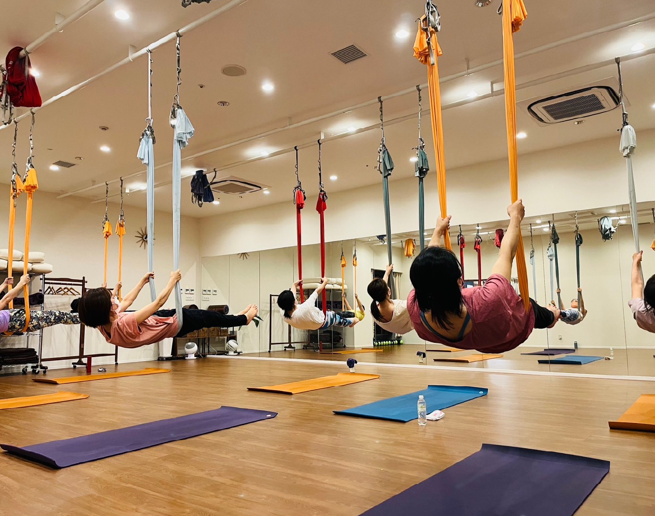 ハンモックを使⽤した「反重⼒フィットネス」。重⼒から解放され、⾝体も⼼も⾃由になります。関節や背⾻に負担をかけず、余計な⼒を使わずに体幹を鍛えることができる為、リハビリやストレス解消にも効果的です。